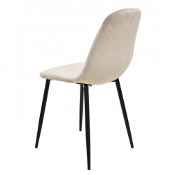 Conjunto de 4 sillas, modelo Olsen, con armazón metálico con acabado en pintura epoxi negro y asiento y respaldo tapizados en terciopelo de color gris o verde.