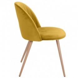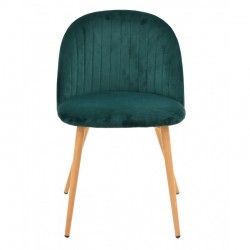Conjunto de 4 sillas, modelo Velvet, con armazón metálico muy resistente con acabo en pintura epoxi imitación madera, asiento y respaldo tapizados en terciopelo en color turquesa, rosa, amarillo mostaza, verde oscuro, gris o rojo burdeos.