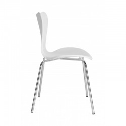 Conjunto de 4 sillas, modelo Arne, con base tubular cromada y carcasa de polipropileno de color blanco.